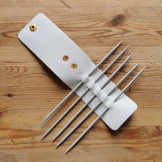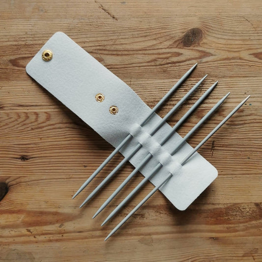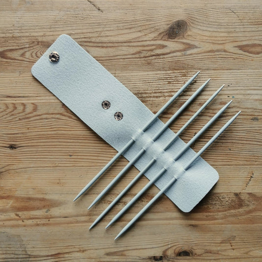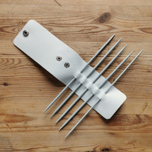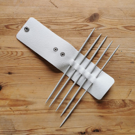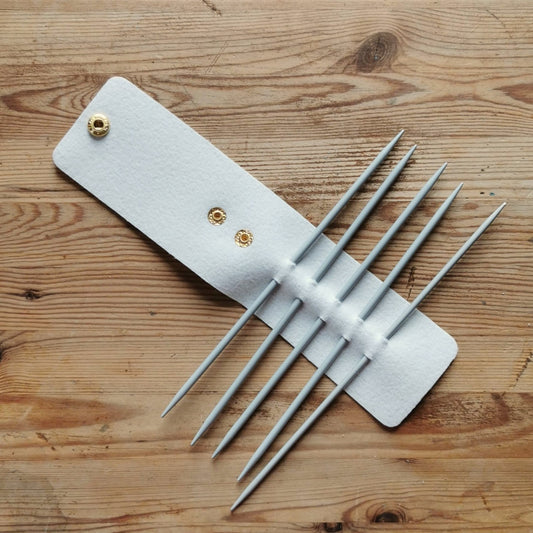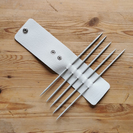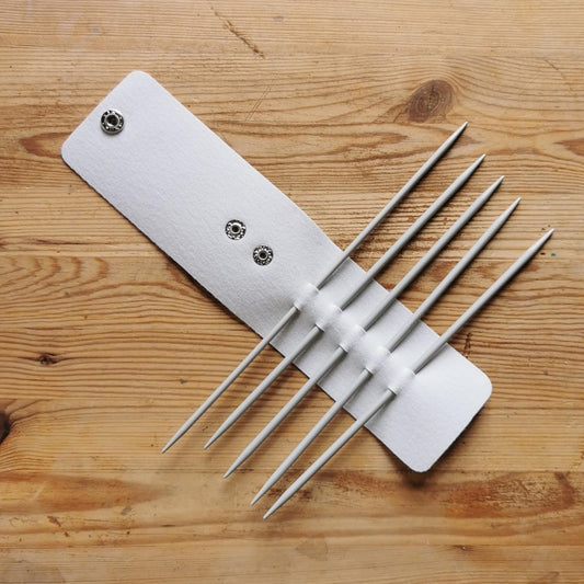Lentelevätkö neulepuikot ja virkkuukoukut sinne tänne ja ovat aina hukassa? Tässä on ongelmaan ratkaisu! Puikkohalissa on viisi lovea, johon saat napakasti eri kokoisia puikkoja (materiaali joustaa hieman). Lopuksi laita hali rullalle ja neppari kiinni - ja kaikki on siistissä paketissa vaikka mukaan otettavaksi tai siististi säilytettäväksi laatikossa!