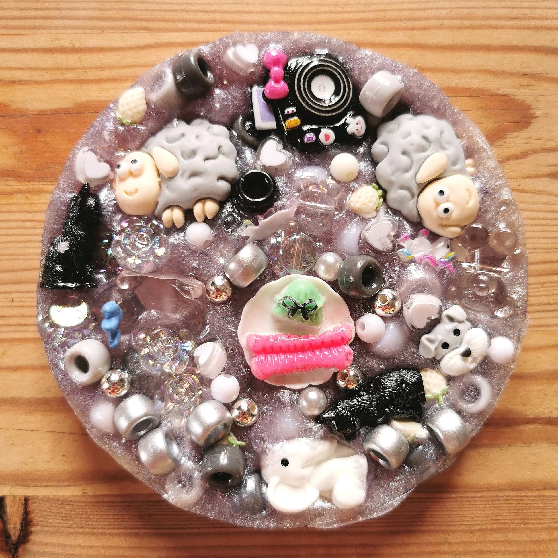 Biohajoavasta ComposiMold-massasta valmistettu hermohali tuo helpotusta nyppimishimoon! Sisältää ison määrän erilaisia hauskoja akryyli- ja muovihelmiä ja pikku esineitä. Halkaisija 10 cm, paksuus n 2 cm. HUOM! Tuote EI ole lelu, eikä ole tarkoitettu lasten käyttöön. Sisältää pieniä osia!