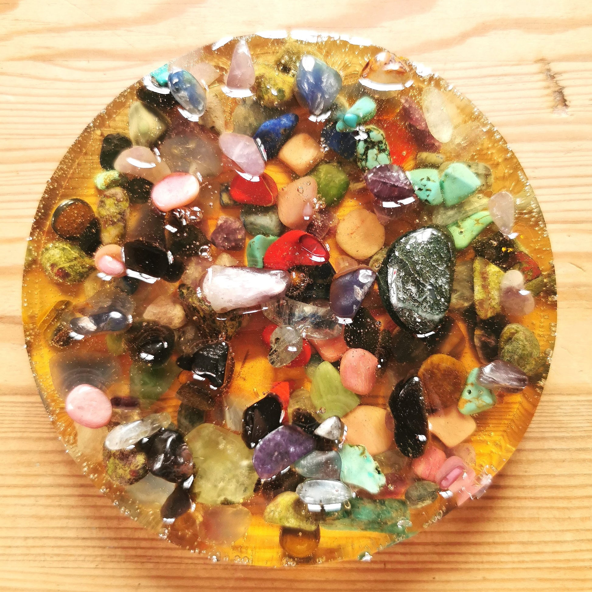 Biohajoavasta ComposiMold-massasta valmistettu hermohali tuo helpotusta nyppimishimoon! Sisältää ison määrän kauniita hiottuja luonnonkiviä, joista osa on piilossa massan sisällä. Halkaisija n 10 cm, paksuus n 2 cm. HUOM! Tuote EI ole lelu, eikä ole tarkoitettu lasten käyttöön. Sisältää pieniä osia!