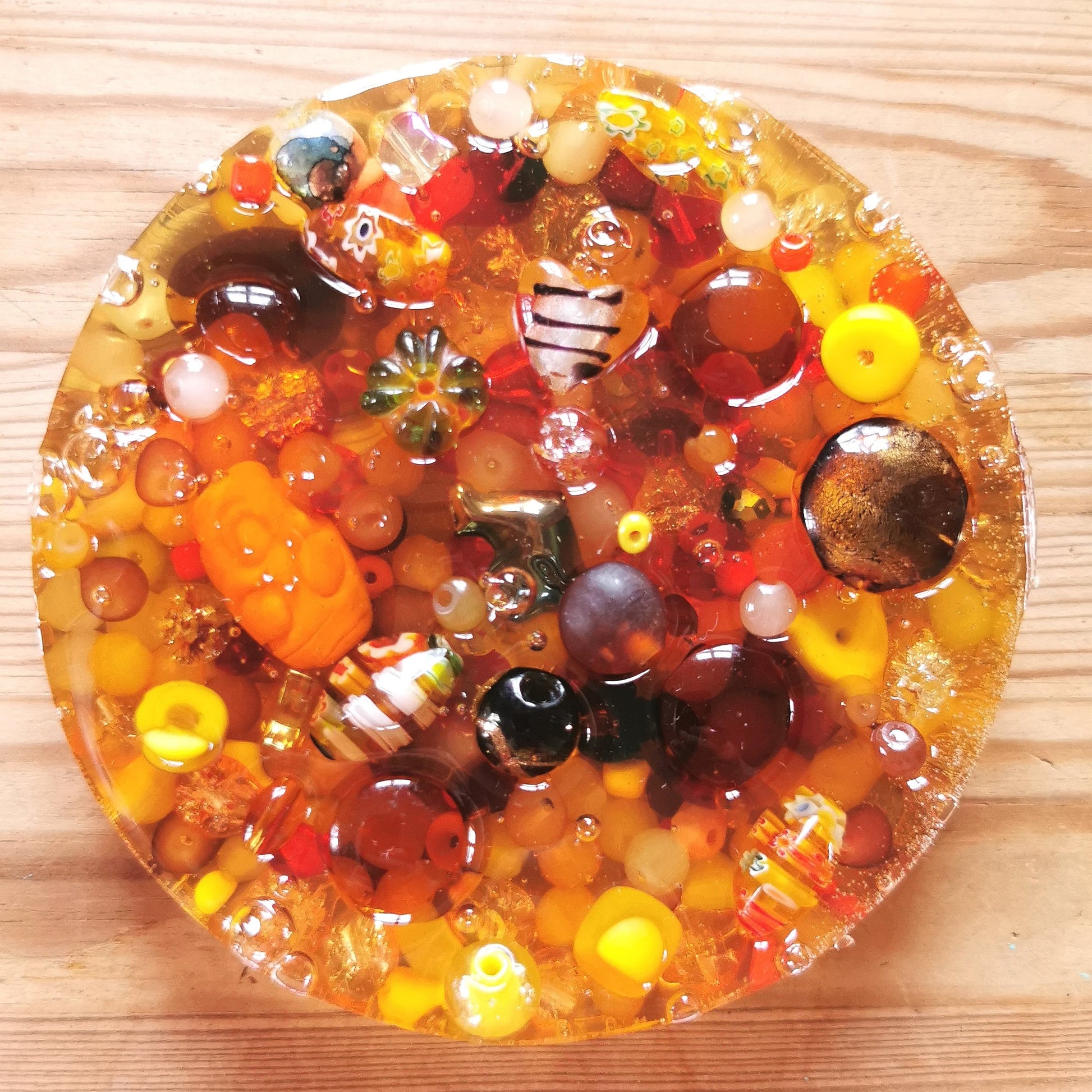 Biohajoavasta ComposiMold-massasta valmistettu hermohali tuo helpotusta nyppimishimoon! Sisältää ison määrän erilaisia lasihelmiä. Halkaisija 10 cm, paksuus n 2 cm. HUOM! Tuote EI ole lelu, eikä ole tarkoitettu lasten käyttöön. Sisältää pieniä osia!
