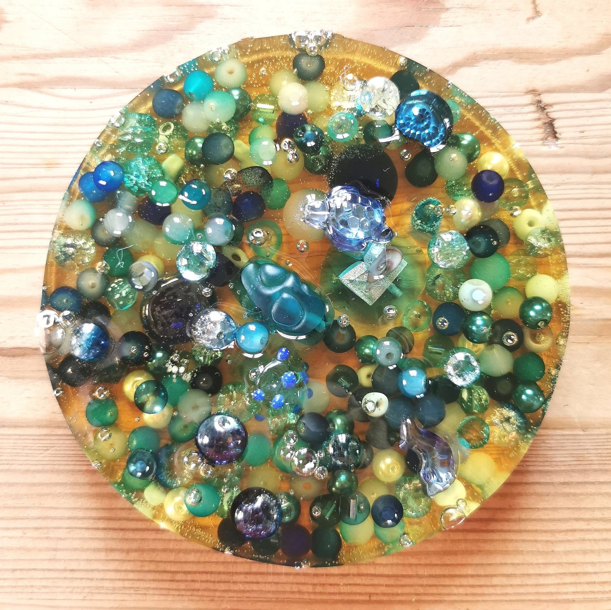 Biohajoavasta ComposiMold-massasta valmistettu hermohali tuo helpotusta nyppimishimoon! Sisältää ison määrän erilaisia lasihelmiä. Halkaisija 10 cm, paksuus n 2 cm. HUOM! Tuote EI ole lelu, eikä ole tarkoitettu lasten käyttöön. Sisältää pieniä osia!