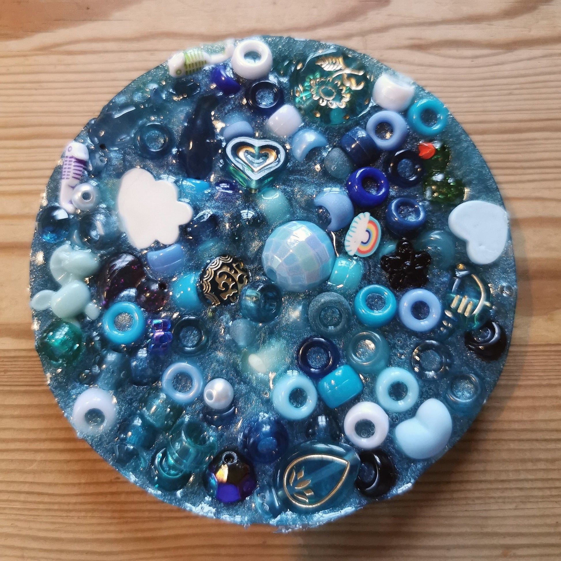 Biohajoavasta ComposiMold-massasta valmistettu hermohali tuo helpotusta nyppimishimoon! Sisältää ison määrän erilaisia hauskoja akryyli- ja muovihelmiä ja pikku esineitä. Halkaisija 10 cm, paksuus n 2 cm. HUOM! Tuote EI ole lelu, eikä ole tarkoitettu lasten käyttöön. Sisältää pieniä osia!