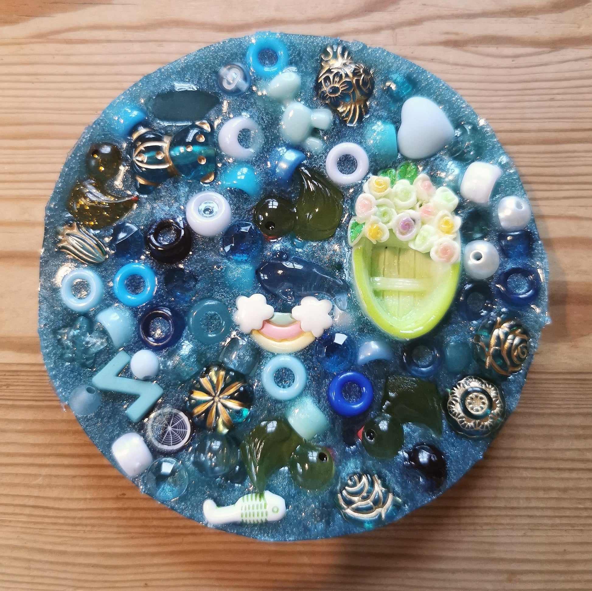 Biohajoavasta ComposiMold-massasta valmistettu hermohali tuo helpotusta nyppimishimoon! Sisältää ison määrän erilaisia hauskoja akryyli- ja muovihelmiä ja pikku esineitä. Halkaisija 10 cm, paksuus n 2 cm. HUOM! Tuote EI ole lelu, eikä ole tarkoitettu lasten käyttöön. Sisältää pieniä osia!