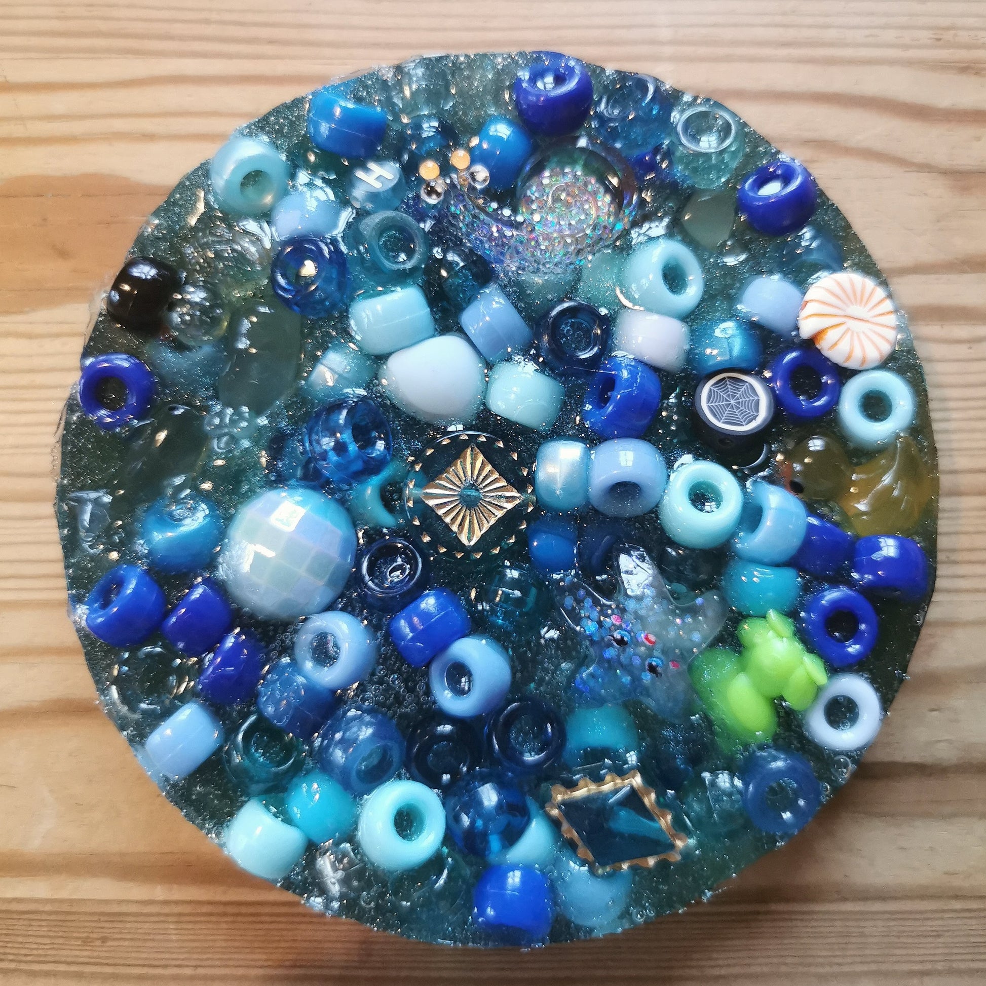 Biohajoavasta ComposiMold-massasta valmistettu hermohali tuo helpotusta nyppimishimoon! Sisältää ison määrän erilaisia hauskoja akryyli- ja muovihelmiä ja pikku esineitä. Halkaisija 10 cm, paksuus n 2 cm. HUOM! Tuote EI ole lelu, eikä ole tarkoitettu lasten käyttöön. Sisältää pieniä osia!