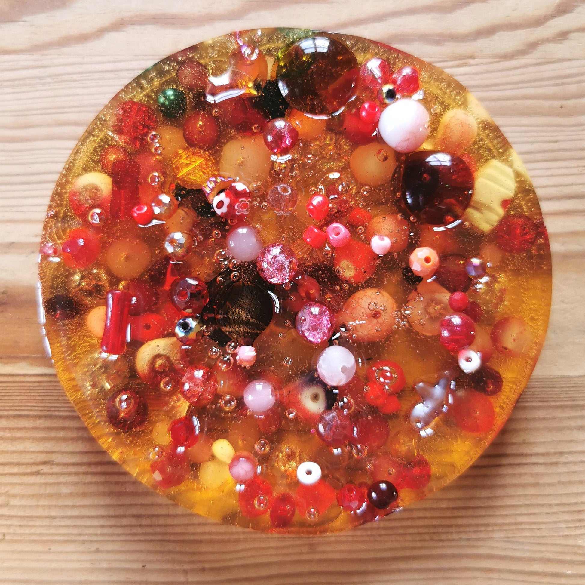 Biohajoavasta ComposiMold-massasta valmistettu hermohali tuo helpotusta nyppimishimoon! Sisältää ison määrän erilaisia lasihelmiä. Halkaisija 10 cm, paksuus n 2 cm. HUOM! Tuote EI ole lelu, eikä ole tarkoitettu lasten käyttöön. Sisältää pieniä osia!