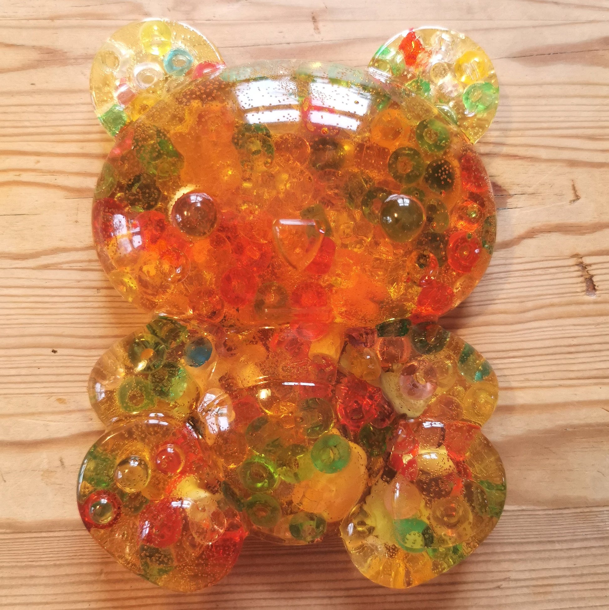 Biohajoavasta ComposiMold-massasta valmistettu hermohali tuo helpotusta nyppimishimoon! Sisältää ison määrän erilaisia hauskoja akryyli- ja muovihelmiä ja pikku esineitä. Tämä nallehali on kooltaan todella iso, 15x11 cm ja paksuuskin max 3 cm. Myydään yhdessä muotin kanssa, jotta saat jatkossakin nallen mallisen halin. HUOM! Tuote EI ole lelu, eikä ole tarkoitettu lasten käyttöön. Sisältää pieniä osia! Vinkki: nyppimisessä pääsee kivasti alkuun, jos nallea taivuttelee vähän :)