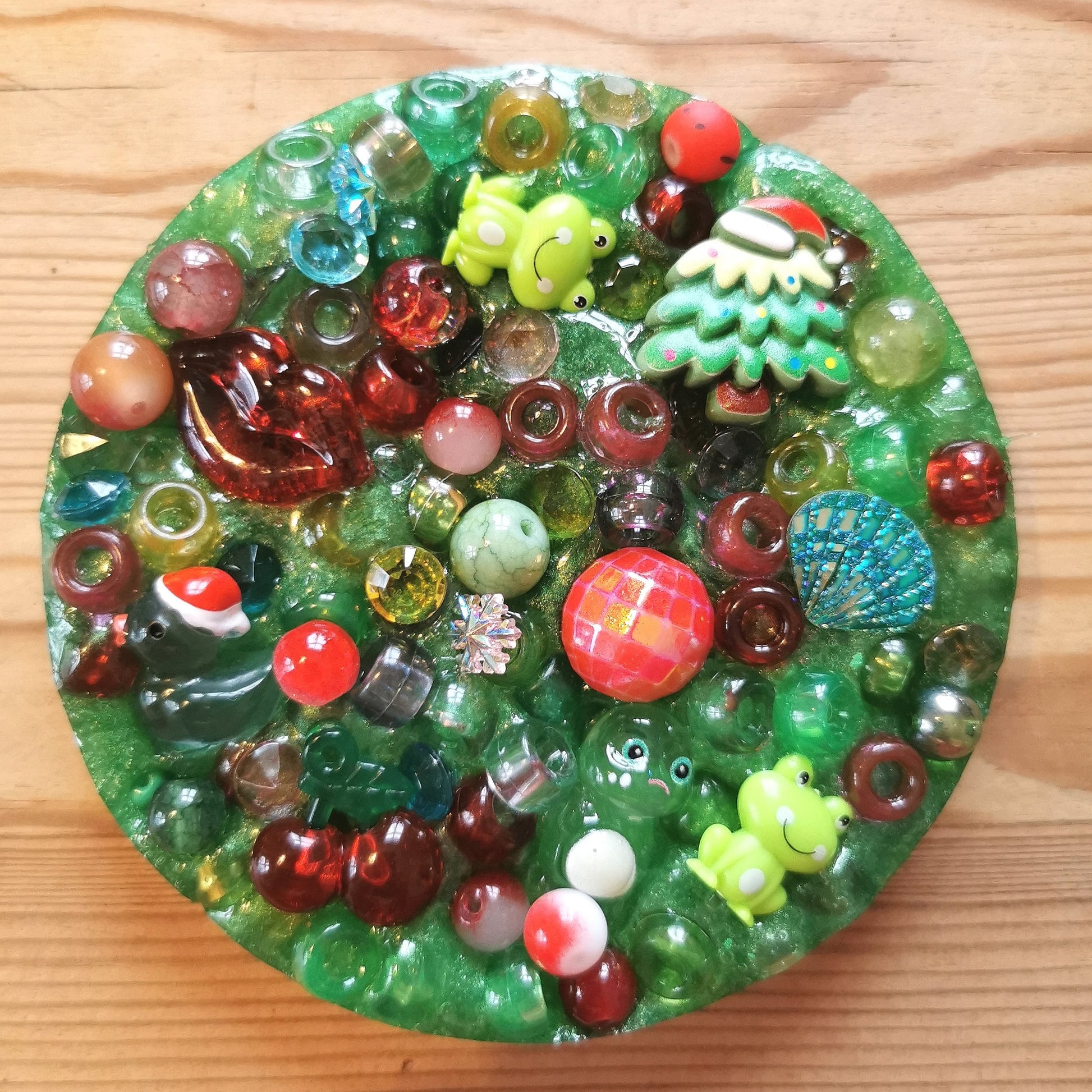Biohajoavasta ComposiMold-massasta valmistettu hermohali tuo helpotusta nyppimishimoon! Sisältää ison määrän erilaisia hauskoja akryyli- ja muovihelmiä ja pikku esineitä. Halkaisija 10 cm, paksuus n 2 cm. HUOM! Tuote EI ole lelu, eikä ole tarkoitettu lasten käyttöön. Sisältää pieniä osia!