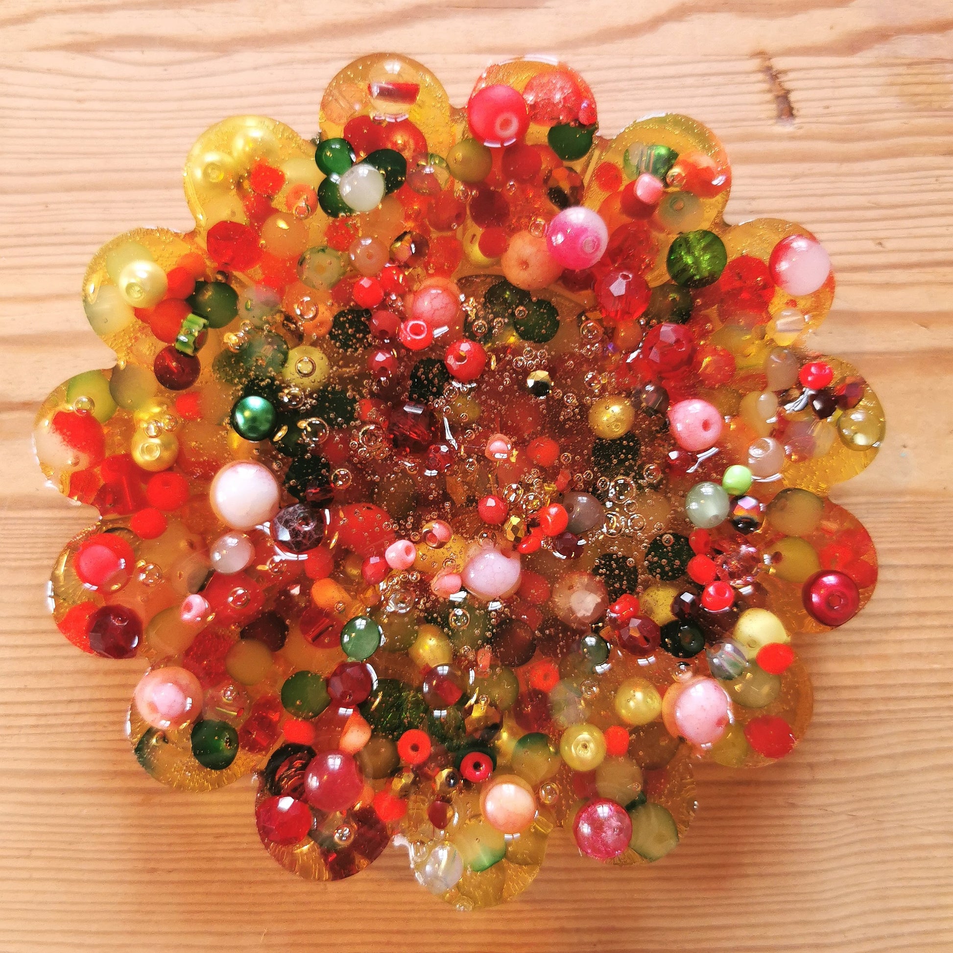 Biohajoavasta ComposiMold-massasta valmistettu hermohali tuo helpotusta nyppimishimoon! Sisältää ison määrän erilaisia lasihelmiä. Halkaisija 10 cm, paksuus n 1,5 cm. HUOM! Tuote EI ole lelu, eikä ole tarkoitettu lasten käyttöön. Sisältää pieniä osia!