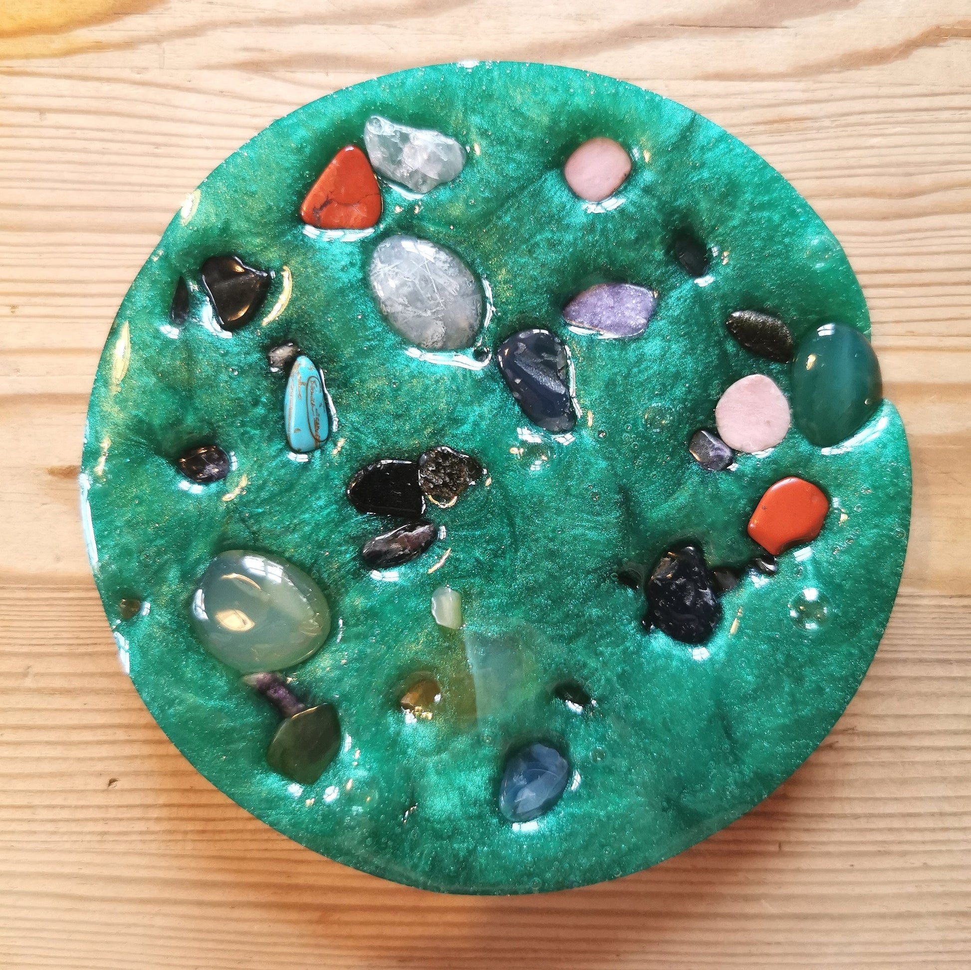 Biohajoavasta ComposiMold-massasta valmistettu hermohali tuo helpotusta nyppimishimoon! Sisältää ison määrän kauniita hiottuja luonnonkiviä, joista osa on piilossa massan sisällä. Halkaisija n 10 cm, paksuus n 2 cm. HUOM! Tuote EI ole lelu, eikä ole tarkoitettu lasten käyttöön. Sisältää pieniä osia!