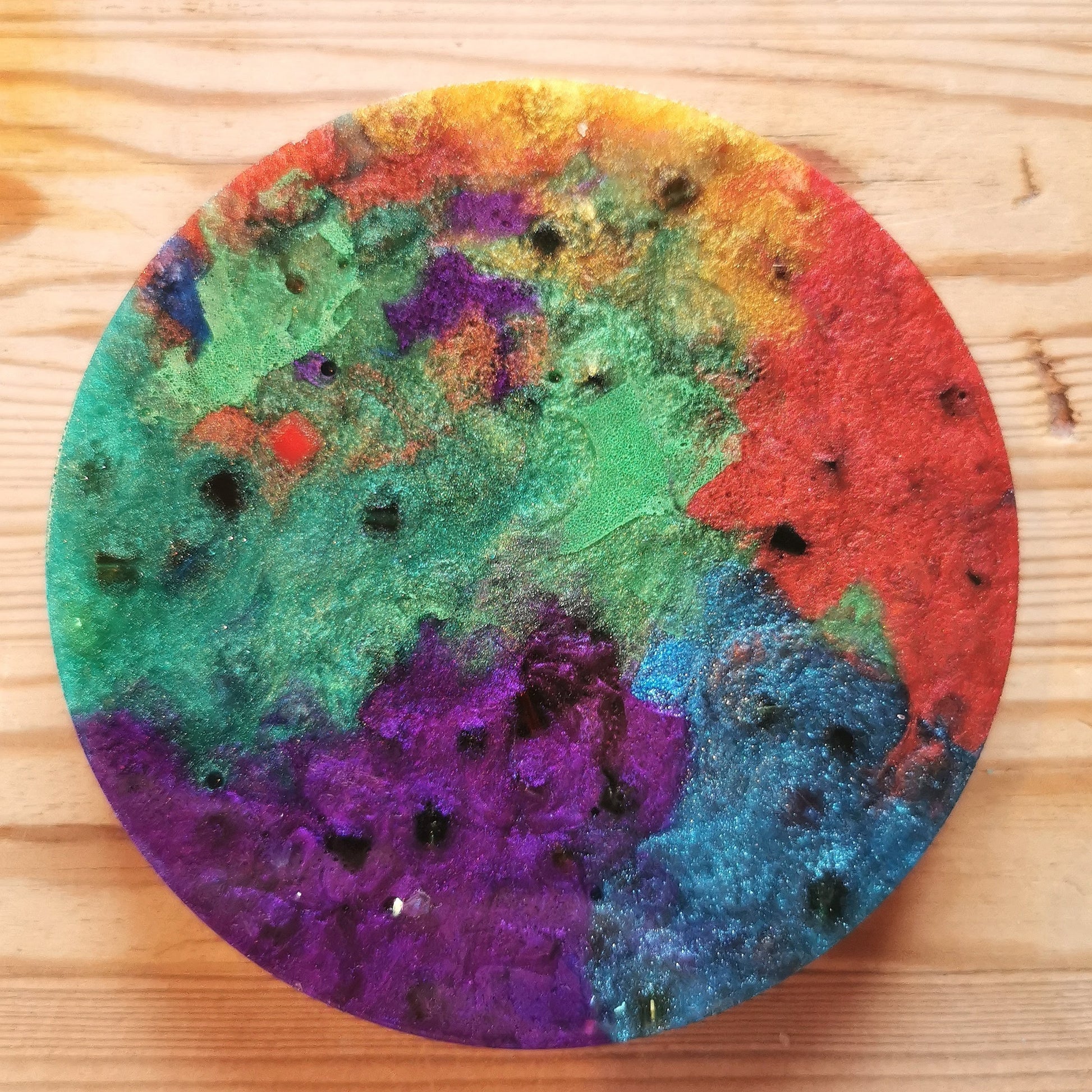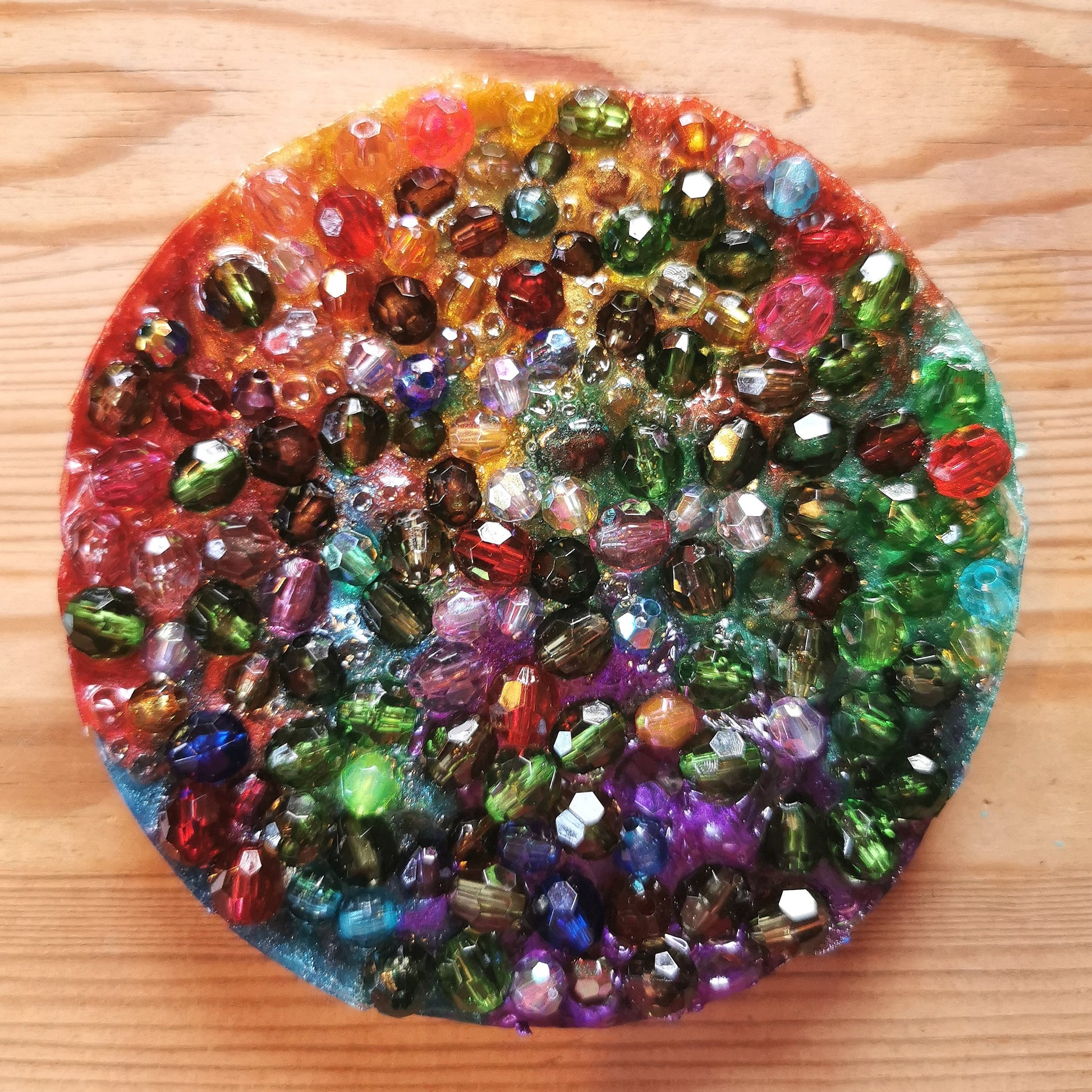 Biohajoavasta ComposiMold-massasta valmistettu hermohali tuo helpotusta nyppimishimoon! Sisältää ison määrän erilaisia lasihelmiä. Tämä hali on persoonallinen yksilö, jossa yhdistyy monta eri väriä. Halkaisija 10 cm, paksuus n 1 cm. HUOM! Tuote EI ole lelu, eikä ole tarkoitettu lasten käyttöön. Sisältää pieniä osia! Hali on normaalia ohuempi, siksi edullisempi hinta.