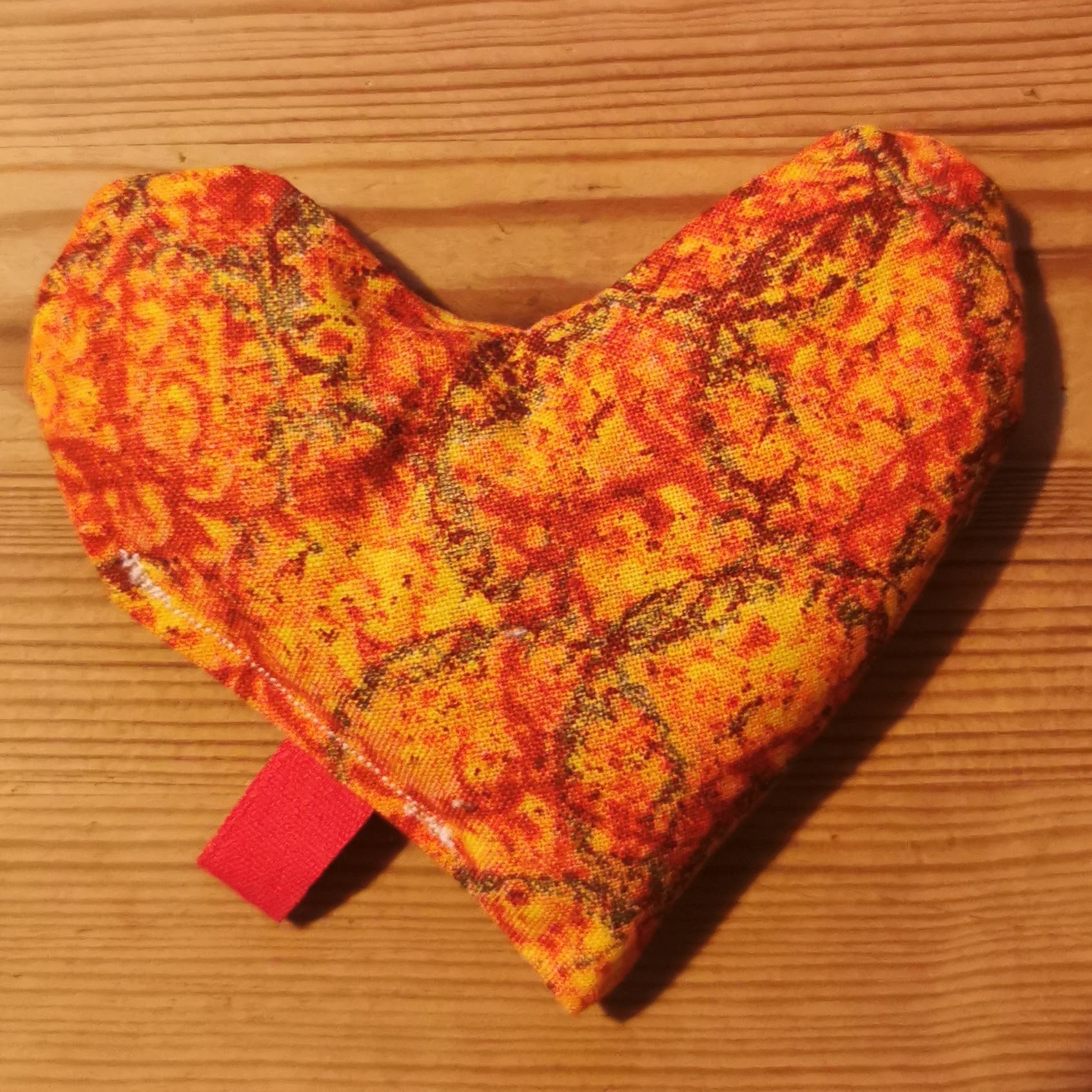Kätevä pieni tuote kylmille käsille tai hypistelyyn! Lämmitä taskuhalia mikrossa n 30 sekuntia (viitteellinen aika, löydä sopiva kokeilemalla omassa mikrossasi) ja lämmittele sillä käsiäsi. Halia voi pitää vaikka taskussa ja sitä on myös mukava hypistellä muuten vaan. Valmistettu kierrätyskankaista, sisältää kotimaisia luomuvehnänjyviä. Halkaisija n 10 cm.